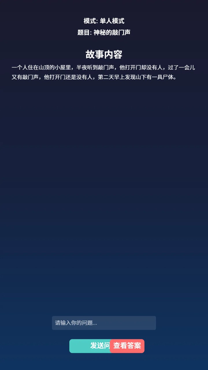 多人互动社交体验:非常适合朋友聚会或线上组队游玩,既能单人挑战题库,也能多人合作提问、讨论,共同揭开谜底。
