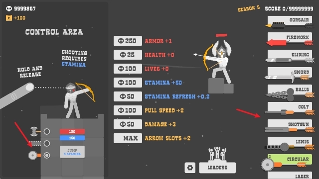 开始游戏前,玩家可在右侧挑选需要使用的弓箭。