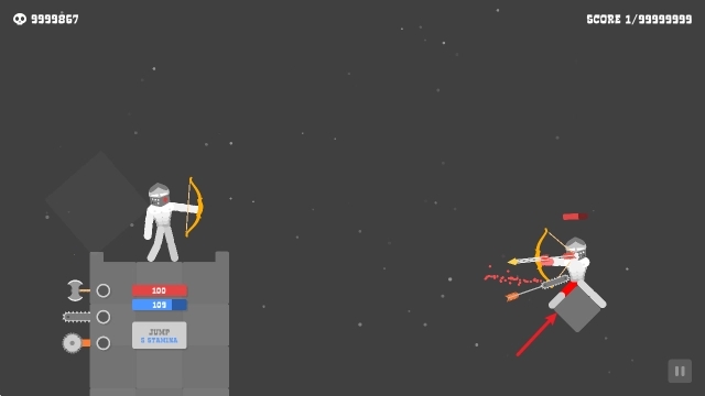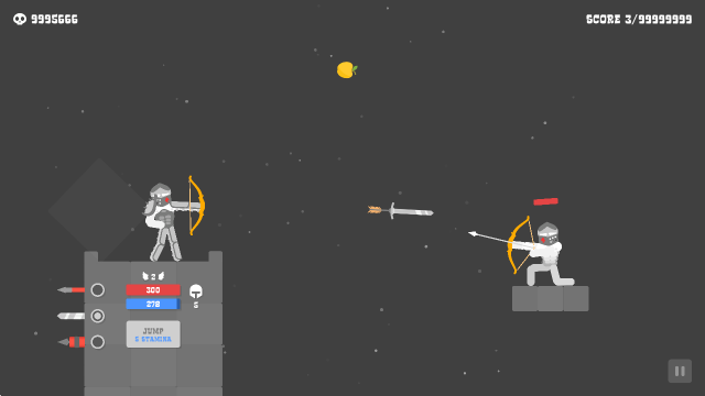 弓箭命中敌人后会造成伤害,击败敌人后会出现新的敌人,并获得分数。