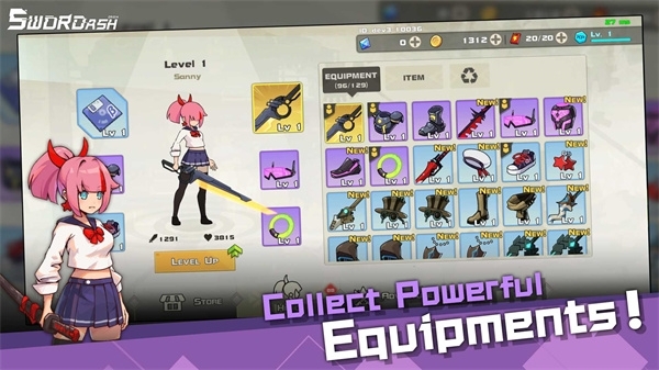 剑术冲刺是一款超有趣的动作冒险闯关游戏,它的英文名是swordash。在游戏里,你将化身一位身着JK服饰的美少女,开启关卡挑战,与各式各样的怪物交锋。关卡中会涌现出千奇百怪的敌人向你袭来,你需要挥舞手中的武器,不断击败它们。击败怪物后,还能获得它们掉落的装备,集齐带有羁绊效果的装备组合,就能让自己变得更强大哦。感兴趣的小伙伴,快来体验剑术冲刺吧!