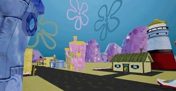 画面:采用卡通渲染,角色和场景均为3D建模,但保持了2D动画的夸张感(如海绵宝宝方形的身体、派大星的圆肚子)。