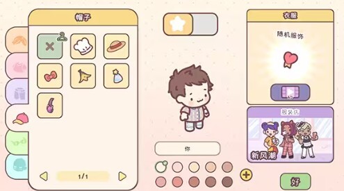 1、打开袖珍爱情游戏,进入角色DIY界面,挑选自己心仪的发型、皮肤和头发,然后选择【好】选项