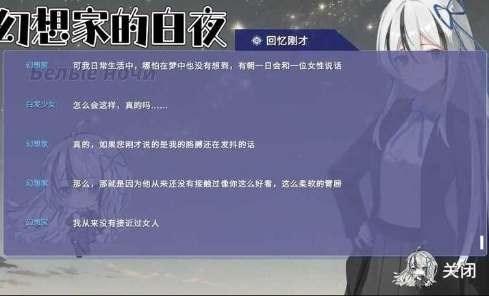 2、玩家能够借助对话选项左右幻想家与山奈晞的关系发展,每一次抉择都会悄然改变后续剧情的氛围。是任幻想家沉浸在幻想的柔乡,还是促使他鼓起迈向现实的勇气?四夜结束之际,你将见证独属于你的“白夜”结局。