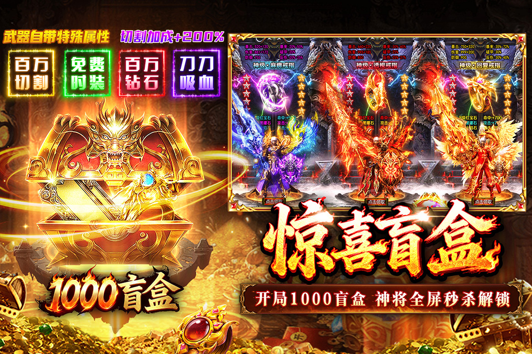 【游戏福利】开局即送 1000 盲盒,神将神装随手出!七日登录领 200 元真充,八卦装备送不停!每日真充红包派送,充值额度轻松激活!永久充值十倍福利,每笔投入双份回报!草船借箭领三资源,灵符元宝传奇币!荡寇诛邪爆真充,打怪打金两不误!免费解锁 VIP 特权,核心功能全开放!