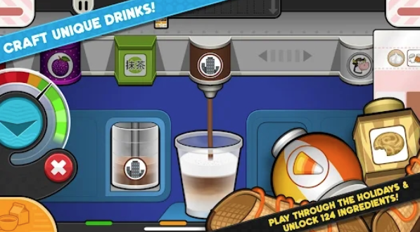 第1-5天:熟悉四个制作区域(基底、糖浆、配料、奶油)。每个顾客的订单显示在屏幕上方,按顺序操作即可。