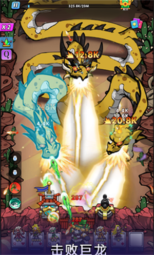 新模式: “元素大乱斗”——地图中遍布元素结晶,每击杀一名敌人会掉落元素核心,集齐三个可召唤元素巨龙协助战斗。