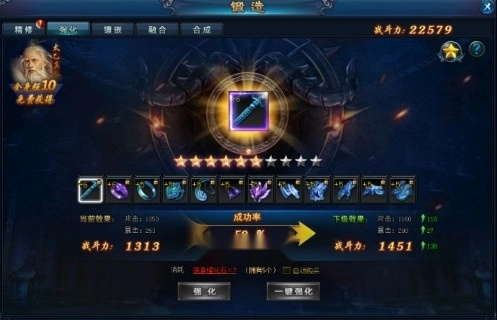 就像上面的图示所呈现的那样,使用【装备强化石】能够对装备开展升星操作,一旦强化成功,星星便会被点亮,装备的对应属性也会得到增强。