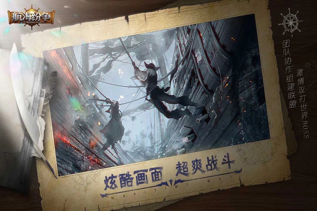 大规模实时海战:支持多玩家舰队实时同屏海战,涉及舰船阵型、火炮射程、风向影响等战术元素,并可集结进行港口争夺战。