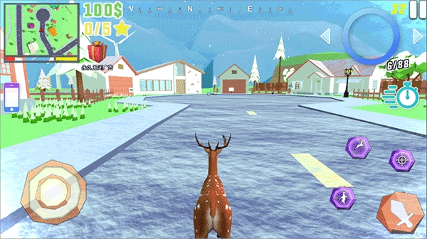 1、点击开始进入游玩界面,操控鹿在城市内随意溜达尝试与路人互动观察不同反应。