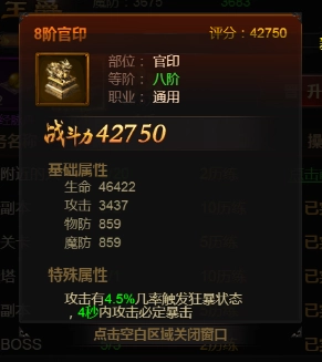 当爵位晋升达到指定次数时,对应的“官位”也会随之提升,进而获得新的“官印”。高阶官印不仅基础属性值更出色,特殊属性效果也更为强劲,比如8阶官印具备几率触发狂暴状态、带来必定暴击等效果,能为你的战斗增添助力与惊喜。