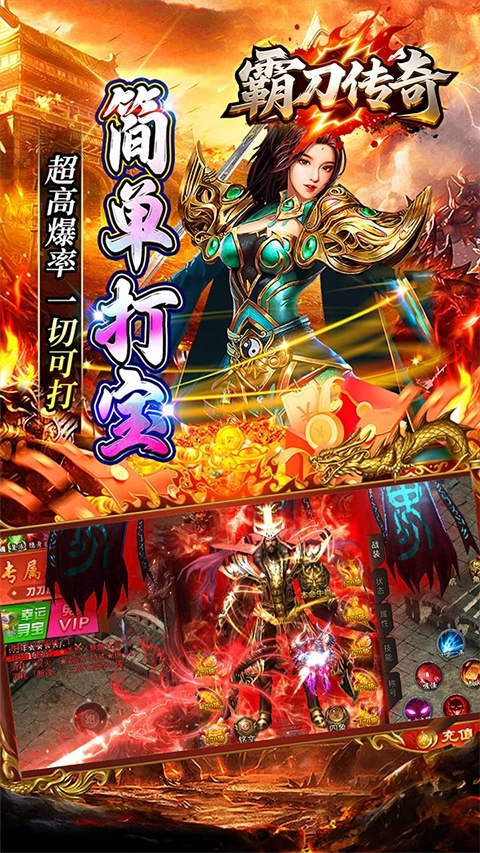 《霸刀传奇》最新版是一款主打“刀刀切割、全屏吸怪”的高爆率微变传奇手游。游戏在经典三职业基础上,独创“霸刀”专属技能体系与“神装收集”玩法,无VIP等级限制,所有装备(含终极)均无绑定可交易。特色“魔窟探宝”副本每天掉落大量“霸刀灵石”,用于兑换稀有道具。光柱满屏、攻速流畅,散人可通过挂机打宝实现逆袭。一刀暴击999,霸刀出鞘谁争锋!