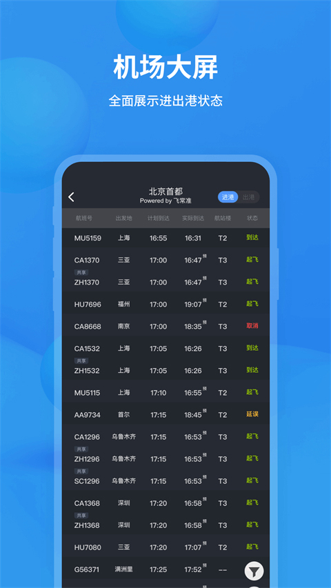 实时动态:提供航班的实时起飞、到达、延误、取消等状态信息。
