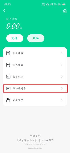 2、于零钱里,寻得【我的银行卡】,点击进入,可进行查看、添加及解绑银行卡的操作。