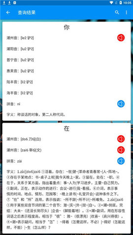 支持离线查询功能,用户可以在无网络环境下使用应用,查询潮州话词条和发音。