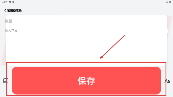 3、进入笔记备忘录页,填写标题与正文后,点击保存按钮,记录重要信息或灵感。