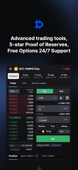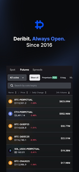 提供比特币和以太坊的期货、期权等多种复杂金融工具,满足专业交易者和机构投资者的需求。用户可以根据市场趋势进行多空双向交易,利用衍生品对冲风险或获取更高收益。