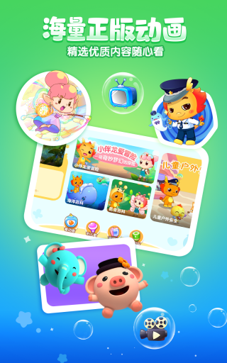 1、全新升级改版的小伴龙动画屋,针对0至6岁的小朋友,提供既丰富又实用的课程以及百科知识。