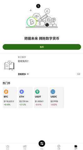 充值资产:在钱包管理页面,选择需要充值的数字货币,点击“充值”按钮获取充值地址。将数字货币转账到该地址后,等待确认即可到账。