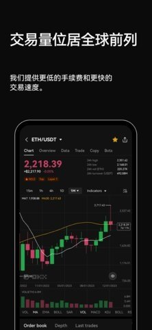 提供丰富的行情图表和数据分析工具,包括 K 线图、成交量分析、市场深度图等,帮助用户进行技术分析。内置实时行情推送功能,用户可以随时掌握市场动态。