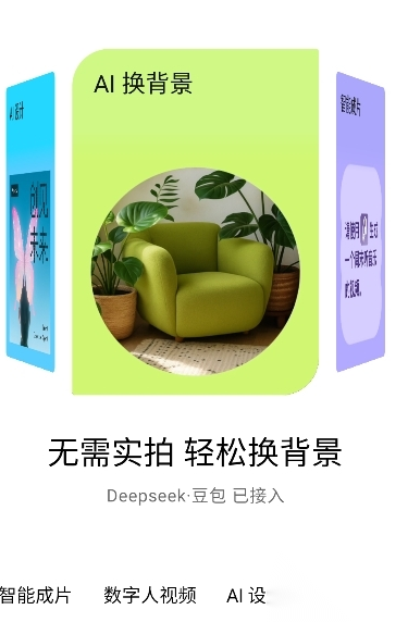 3、这些功能包括但不限于智能成片、数字人、AI设计以及AI换背景等。