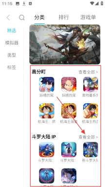 1、分类页面有【斗罗大陆IP】板块,点击旁边【查看全部】,能看到超多斗罗大陆IP游戏。