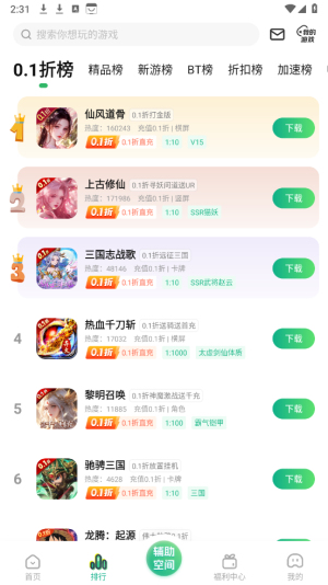 1. 涵盖精品榜、新游榜、折扣榜、加速榜等详尽的排行榜单,让你轻松获取心仪的游戏资源,无需担忧寻觅无门。