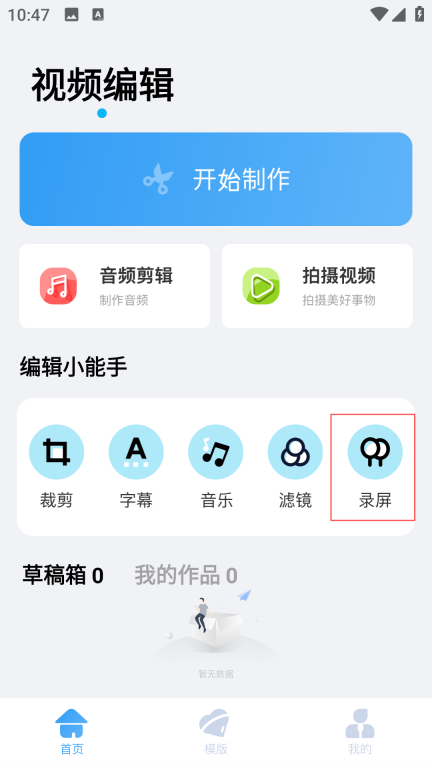 3、点击【开始录屏】,完成后会自动保存。若想保存到相册,可点击【管理】按钮。