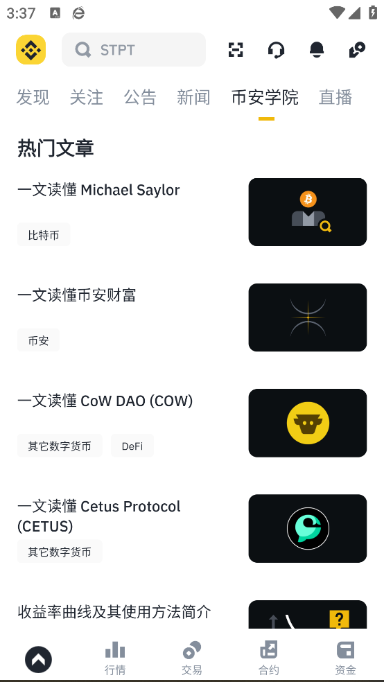 社区与教育集成:内置币安学院、直播频道及社区论坛,助力用户学习与交流。