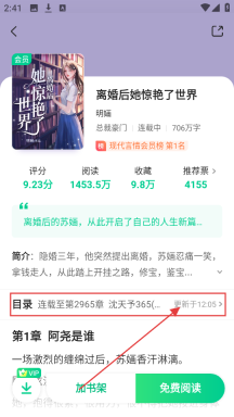 进入小说详情页后,你可以看到评分、阅读量等相关信息;如果想要选择具体章节阅读,点击【目录】按钮即可。
