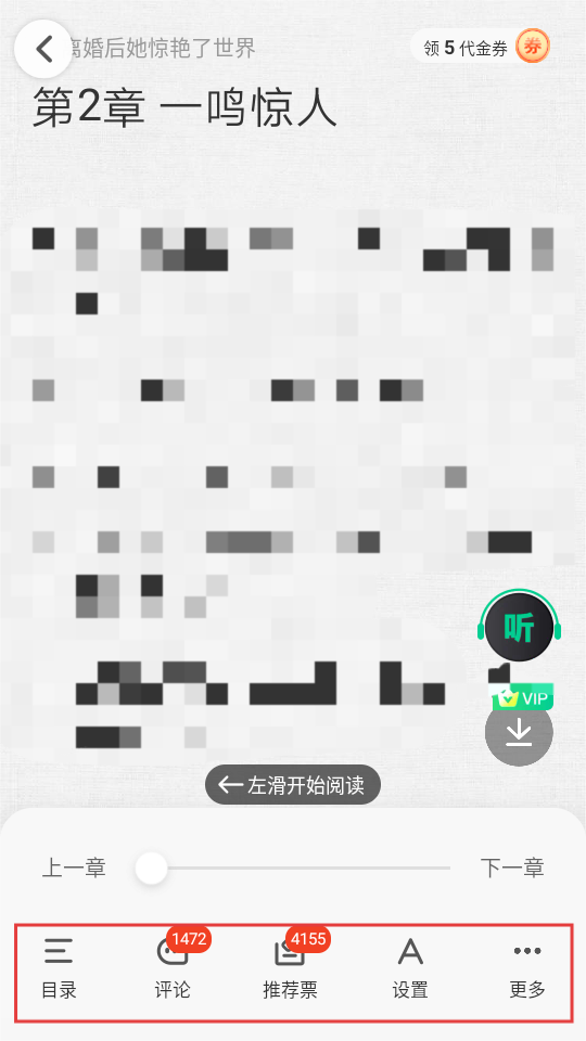 4、进入章节阅读界面后,底部设有【目录】【评论】等功能选项,若需切换章节或调整相关设置,点击这些选项即可操作。
