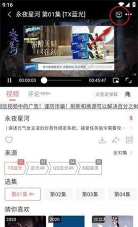 2、进入播放界面后,点击右上角的“TV”电视图标(如图所示)。