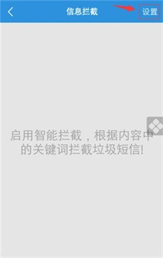 2、接着,在骚扰拦截的界面点击右上角的设置。