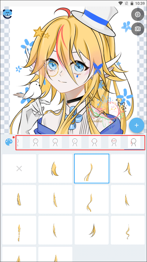 进入画像编辑界面后,就能对眼睛、嘴巴、手、头发、衣服等各个部位展开二次创作。