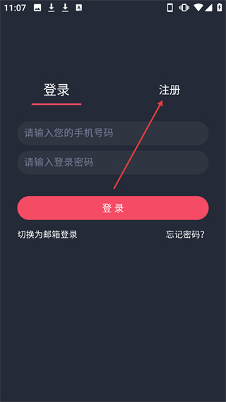 3、在登录页面点击顶部的【注册】选项,即可切换至注册页面。