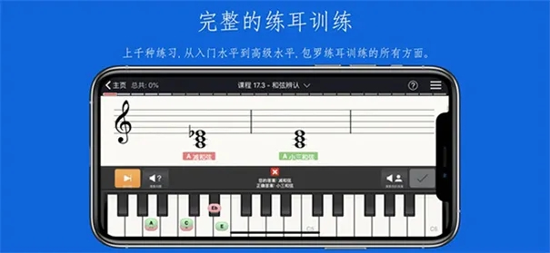 2、帮助用户正确的练习各种和弦,让用户能够轻松的学会和弦辨认、和弦转位、和弦进行等