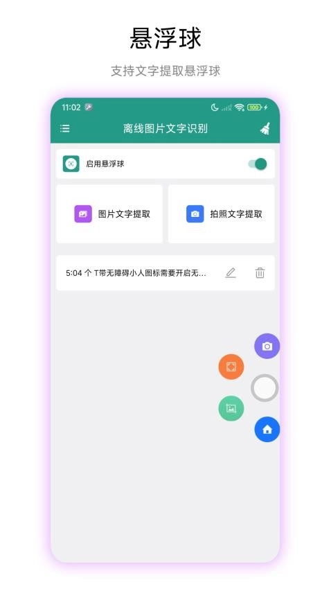 1、悬停球,在任何界面打开,进行文本识别,无需切换应用或保存图片。