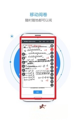 5. 在“移动阅卷”模块里,教师能够随时查看学生的手写答卷以及评改痕迹,该模块可真实还原阅卷场景,有助于教师了解批改进度。