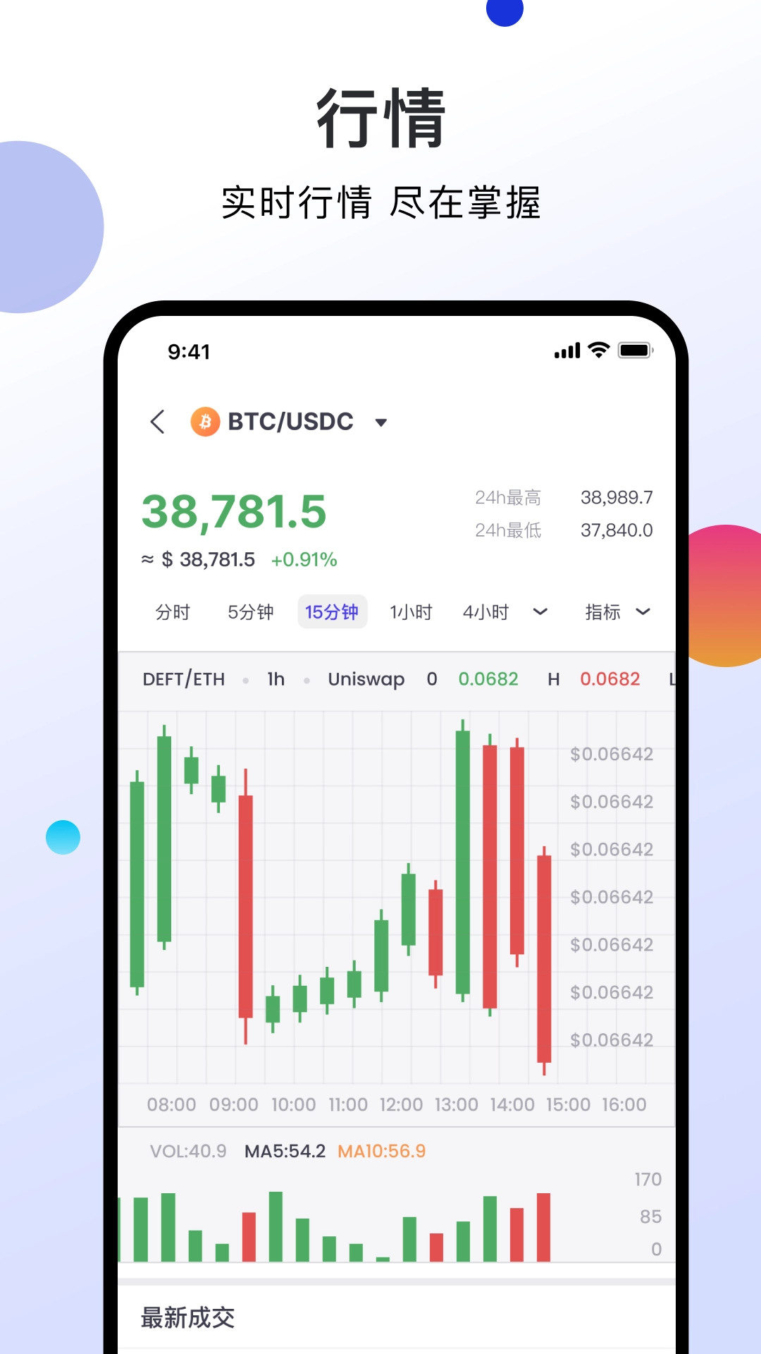 深度行情分析:除了基本的行情数据外,还提供深度行情分析工具,如 K 线图、成交量分布图、买卖盘深度图等,帮助用户从多个角度分析市场趋势,做出更准确的交易决策。