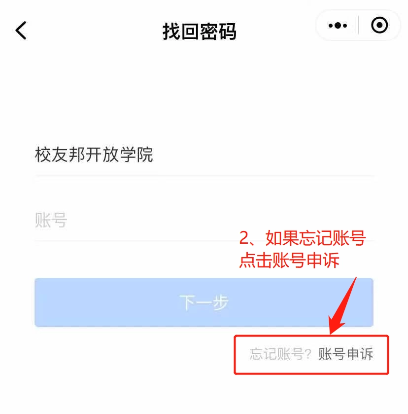 2、忘记校友邦登录账号,可在登录页面;