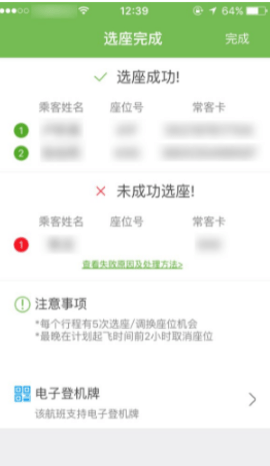 5、进入“选座完成”页面,可以看到选座是否成功: