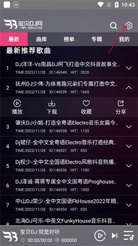 1、首先我们打开宝贝DJ,接着进入软件首页,在这里能看到各种各样的DJ歌曲,点击你想选择的那一首即可。