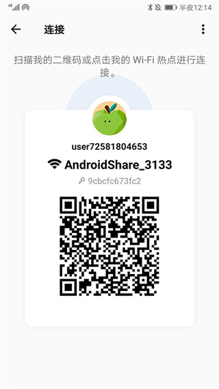 2、如图,已经生成了二维码,发送方通过扫描接收方的二维码或者点击wifi热点进行连接。