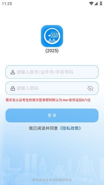 3、登录报名系统完成网上报名,通过输入身份证和密码即可登录,具体为贵州省普通高校招生考试考生综合信息平台(http://gkks.eaagz.org.cn)。