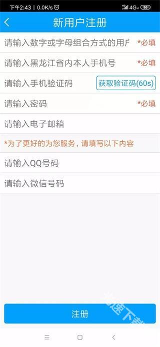 6、进入新注册人员信息界面,输入信息后点击“注册”完成新用户注册