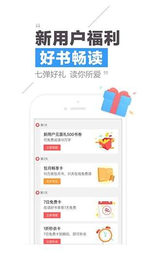 1、新用户福利体系上线;七弹好礼,读你所爱;