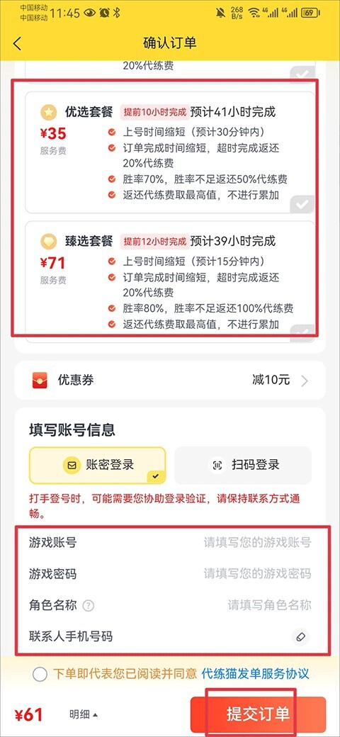 4、最后在确认订单页面选择好套餐,把账号信息补充完整,然后点击提交订单并完成支付就可以了