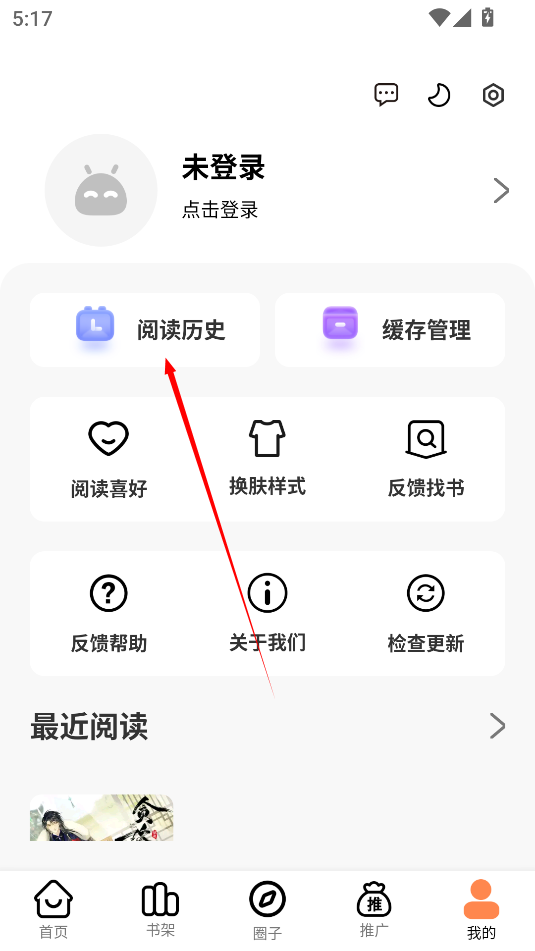 2、在个人页面点击上方的“阅读历史”