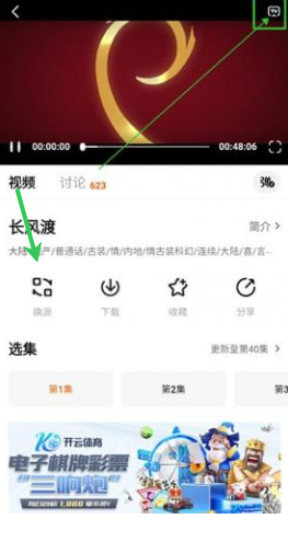 2.进入播放详情页面后,点击上方可以投屏播放。