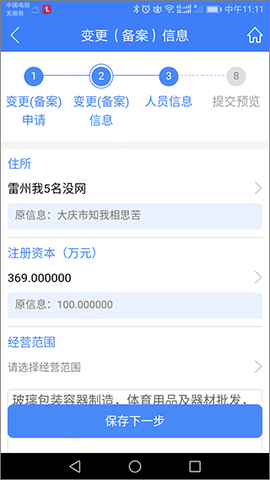 4、在办理流程中选择“变更(备案)申请”,接着挑选变更内容;为了便于演示,此处勾选了所有可供变更的项目。