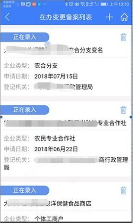 3、选定企业后,办理变更业务并进入办理流程,随后点击垃圾桶图标,即可删除该企业的变更办理业务。